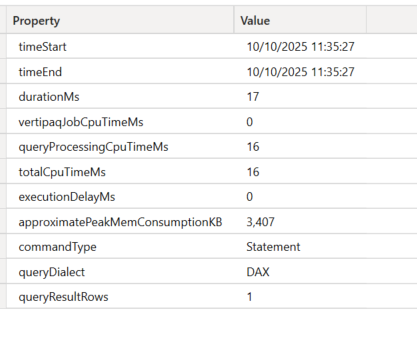 Table function used in measures | FE | SE | Total | SE Queries | Approx. Peak Mem Consumption (Bytes) |
